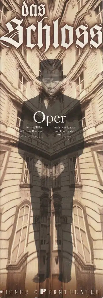 Nach dem Roman von Franz Kafka und der Dramatisierung von Max Brod. Österreichische Erstaufführung. Musikalische Leitung: Andreas Mitisek. Inszenierung und Bühne: John Lloyd Davies. Kostüme: Claudia Hannemann. Mitwirkende: Martin Winkler, Peter Veit, Helga Wagner, Roman Sadnik, Stan Meus, Robert Lucien Demers, Tobias Cambensy, Andrea Pfeffer, Maria Harpner, u.a. - Theaterprogramm, Opernprogramm, Ballettprogramm, Musicalprogramm, Konzertprogramm, Theatermemorabilia, Programmhefte Sammlung, deutsche Theatergeschichte.