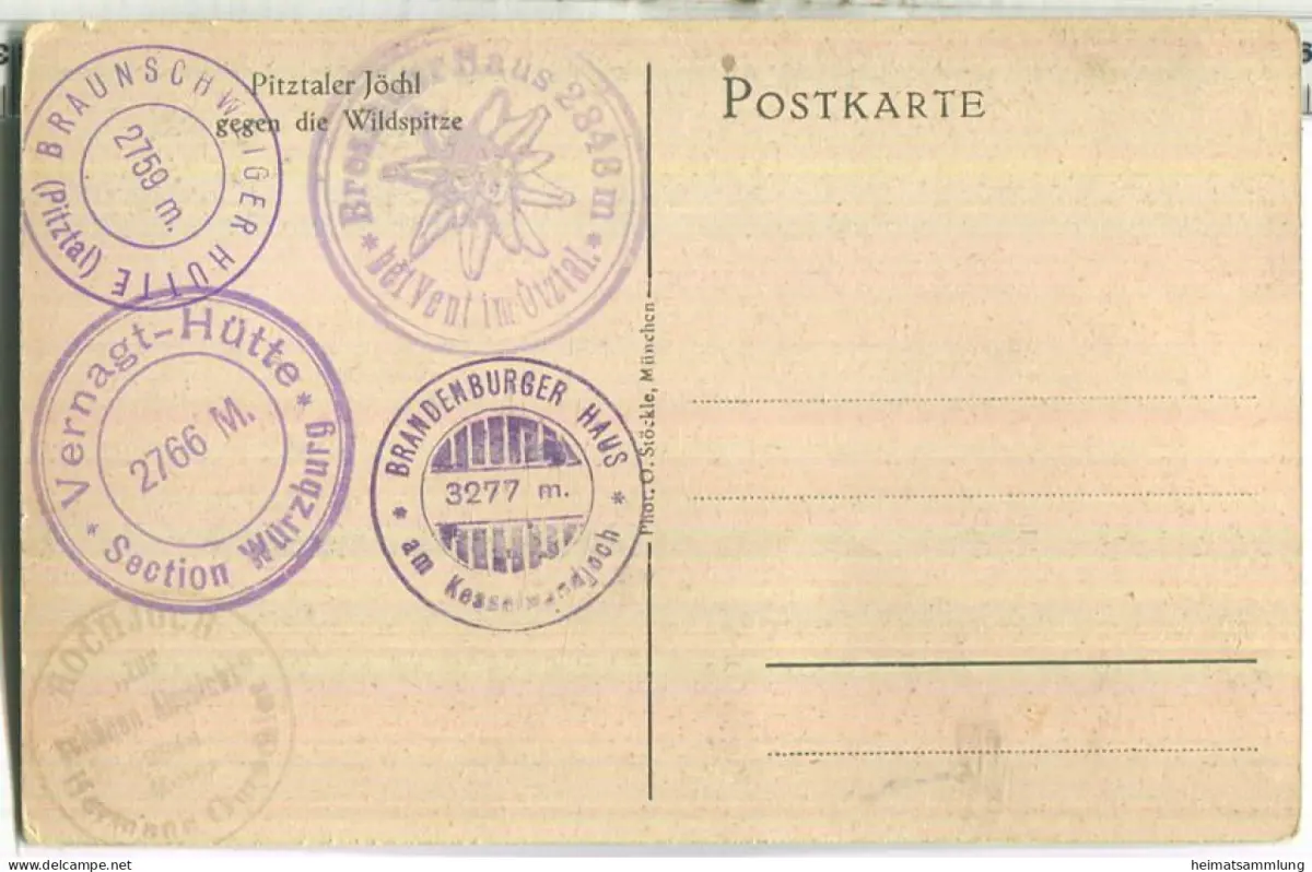 Wildspitze - Pitztaler Jöchl - Hüttenstempel - Verlag O. Stöckle München