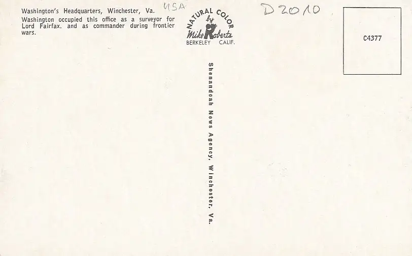 Winchester, Va., Washington's Headquarters ngl D2010