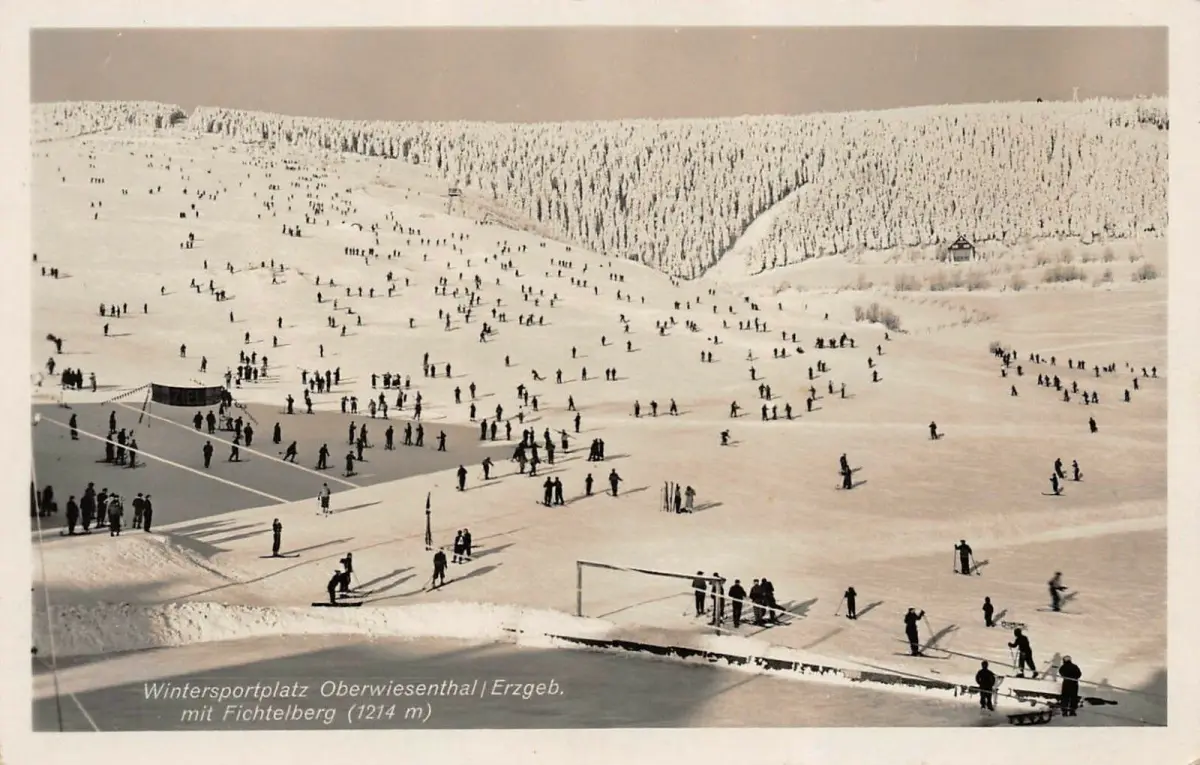 Wintersportplatz am Fichtelberg Oberwiesenthal Erzgebirge Sachsen AK 1937