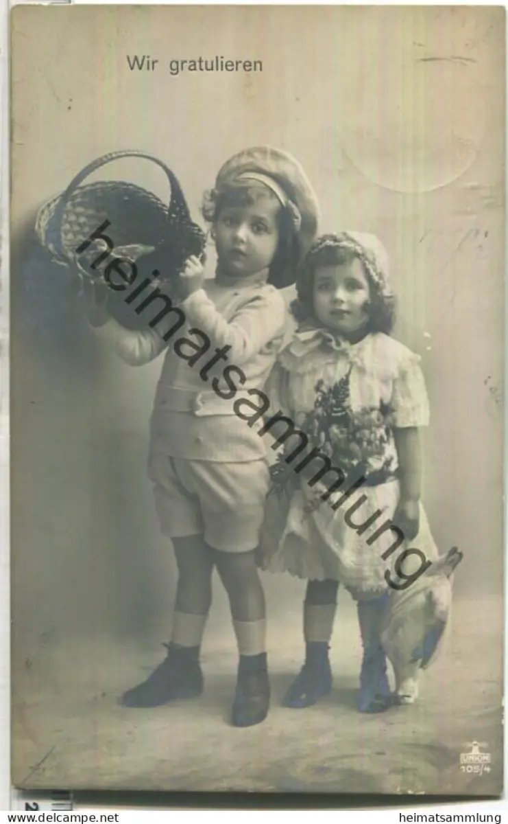 Wir gratulieren - Kinder mit Blumen - Gebrauchsspuren (E88006) gel. 1910