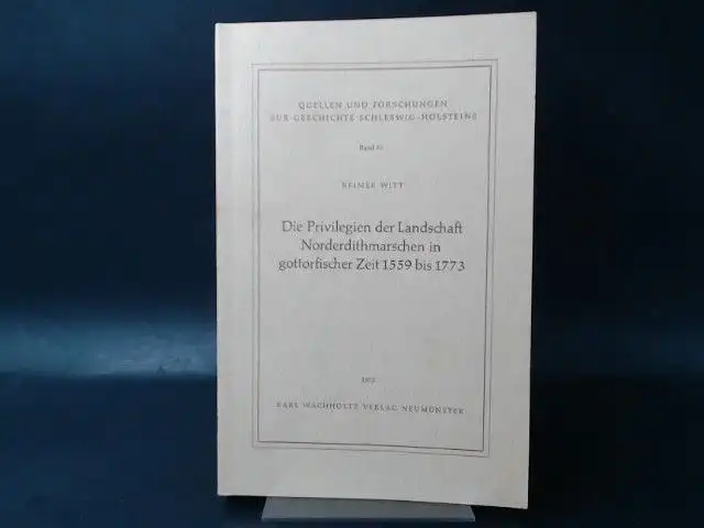 Witt, Reimer: Die Privilegien der Landschaft Norderdithmarschen in gottorfischer Zeit 1559.[fünfzehnhundertneunundfünfzig] bis 1773 [siebzehnhundertdreiundsiebzig].
