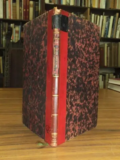 8° ( 21,7 x 13,5 cm). Roter Originalhalblederband mit goldgeprägtem Rückentitel und Rückenschmuck. Schwärzung am Buchrücken oben und auf dem Titelblatt. Lesebändchen. Ecken und Kanten etwas berieben. Oberes Kapital mit wenigen Millimeter Fehlstelle. Titelblatt, 68 Seiten und eine vielfach gefaltete Tafel mit 8 Figuren. Durchgehend im oberen Innenrand mit wenig störender, alter Feuchtspur. Titelblatt mit größerem Abschnitt der rechten Ecke oben und unten ca. 4cm breit, S. 41/42 rechts oben Abschnitt mit geringem Buchstabenverlust, ebenso auf der Tafel. Gutes, sehr seltenes Exemplar