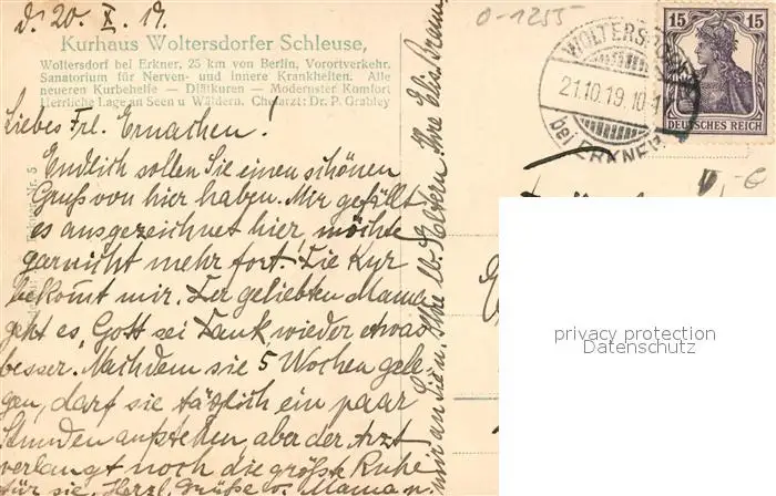 Woltersdorfer_Schleuse Sanatorium Woltersdorfer_Schleuse postalisch gelaufen 1919 Erhaltung siehe scans [KathaD81] Kathoren