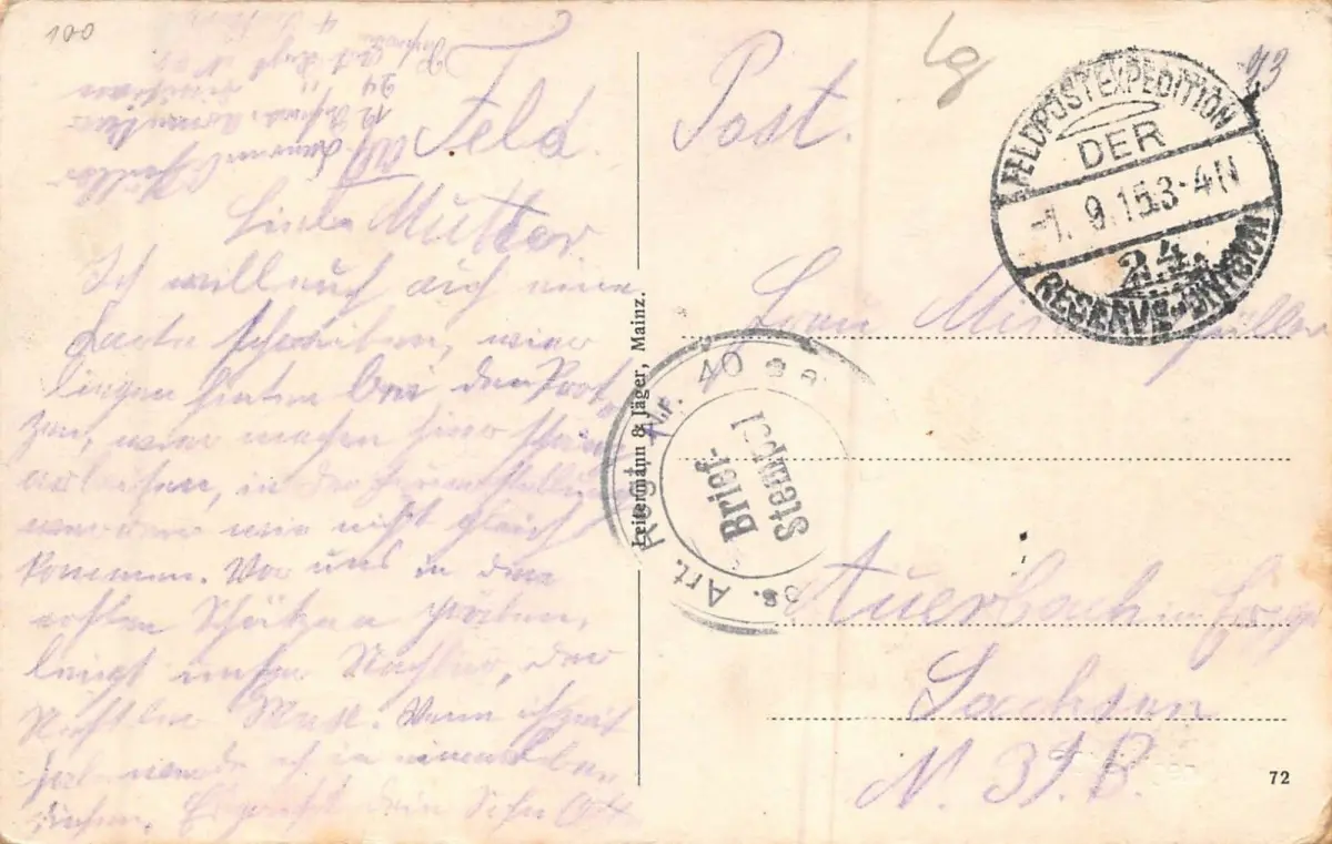 Rückseite: gelaufen 1915