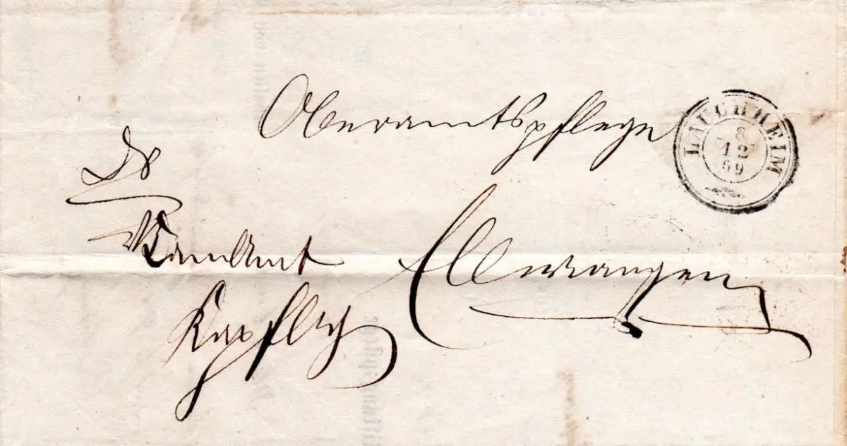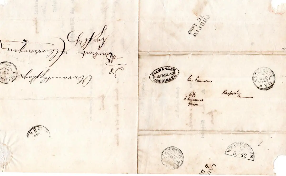 Württemberg 1869, Postablage Zoebingen u. innen K3 Lauchheim auf Wende Brief