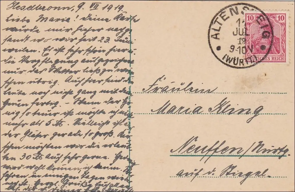 Württemberg: AK Luftkurort Heselbronn bei Altensteig 1912 nach Neuffen