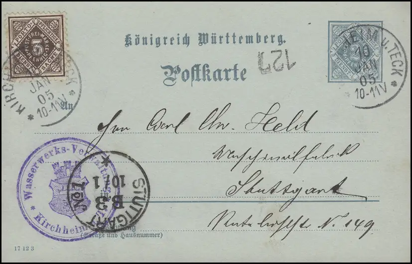 Württemberg DP 3/06 + Zusatzfr. Wasserwerks-Verwaltung KIRCHHEIM u. TECK 10.1.05