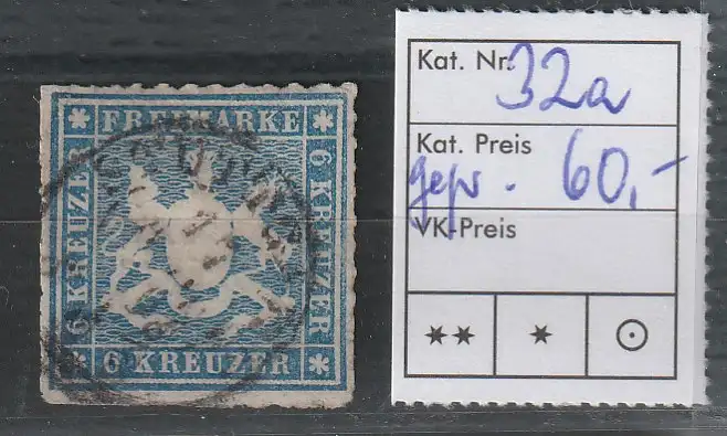 Württemberg Nr. 32 a, gestempelt, bestgeprüft Thoma BPP