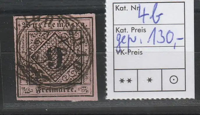 Württemberg Nr. 4 b, tiefstgeprüft Heinrichz BPP