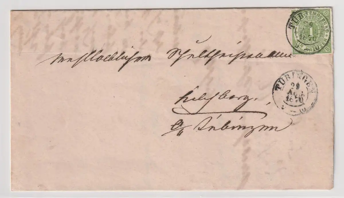 Württemberg Sauberer Brief nach Kilchberg (Segmentstempel!), geprüft.