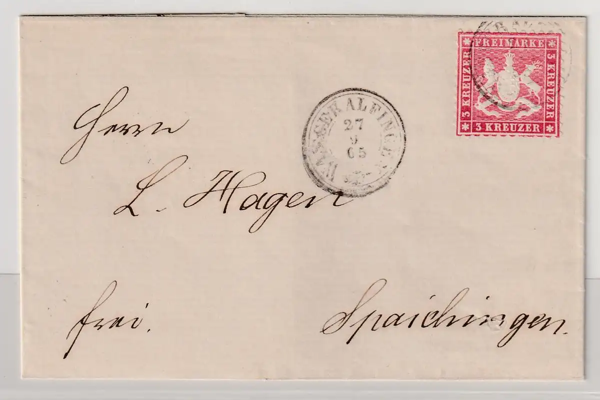 Württemberg kompl. Briefhülle mit Nr. 26a ab Wasseralfingen, gepr.