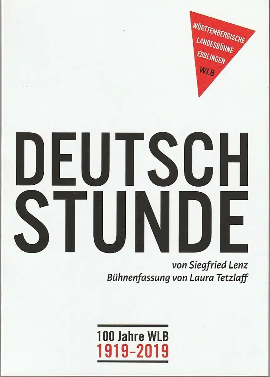 Württembergische Landesbühne Esslingen WLB, Friedrich Schirmer, Marcus Grube: Programmheft Siegfried Lenz DEUTSCHSTUNDE Premiere 12. Oktober 2019 Spielzeit 2019 / 2020.