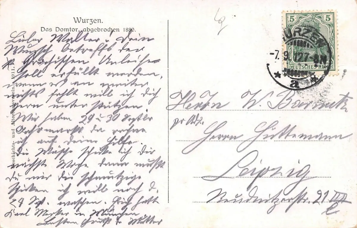 Wurzen Das Domtor, abgebrochen 1880 Postkarte 1912