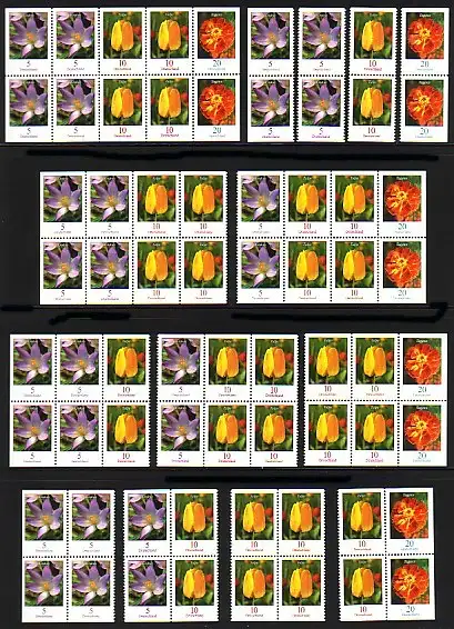 ZD-Blumen 5/10/20 Cent, Zusammendruck-Set Krokus Tulpe Tagetes komplett **