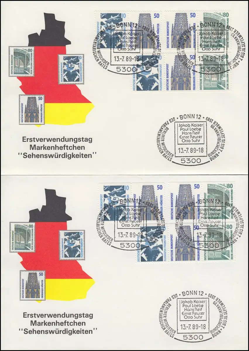 ZD-Set aus MH 25 SWK - 6 Zusammendrucke W79-W84 kpl. auf 2 Schmuck-FDC 13.7.89