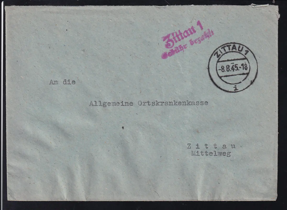 ZITTAU 1 i 8.8.45 + roter L2 Zittau 1 Gebühr bezahlt auf Brief