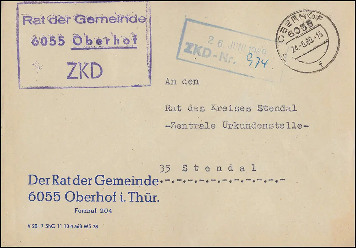 ZKD-Brief Rat der Gemeinde OBERHOF 24.6.69 an Rat des Kreises in STENDAL 26.6.69