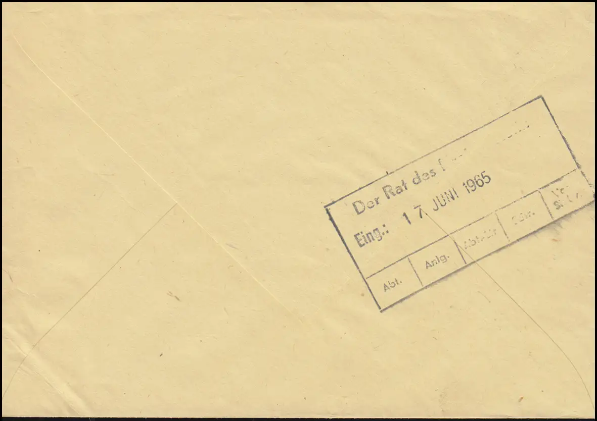 mit Poststellenstempel "20 Zeitz 4901" und Eingangsstempel beim "Rat der Kreises Zeitz am 17.6.1965"