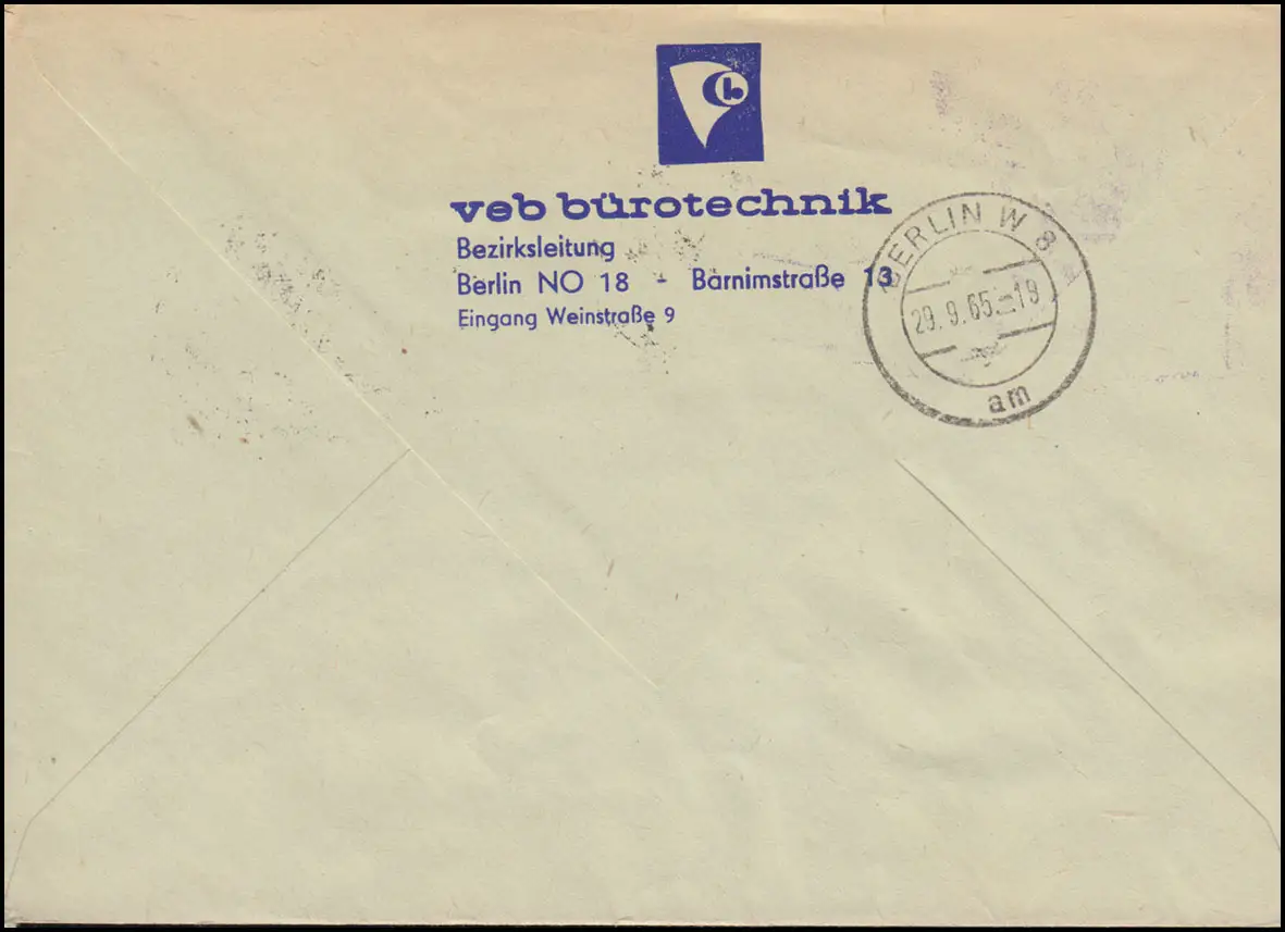 ZKD-Brief VEB Bürotechnik BERLIN 17 - 29.9.65 an Institut Marktforschung Berlin