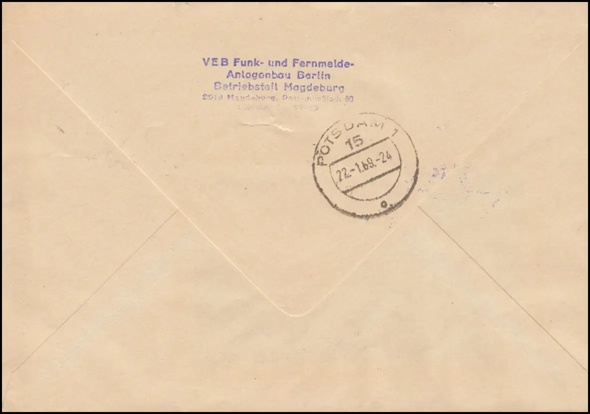 ZKD-Brief VEB Funk- und Fernmeldeanlagenbau Berlin MAGDEBURG 22.1.1969