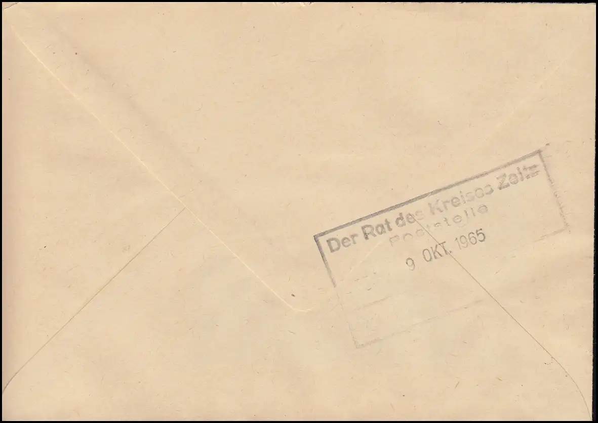 Fensterbrief als Dienstpost nach Zeitz mit Eingangsstempel "Rat des Kreises Zeitz 9.10.1965"