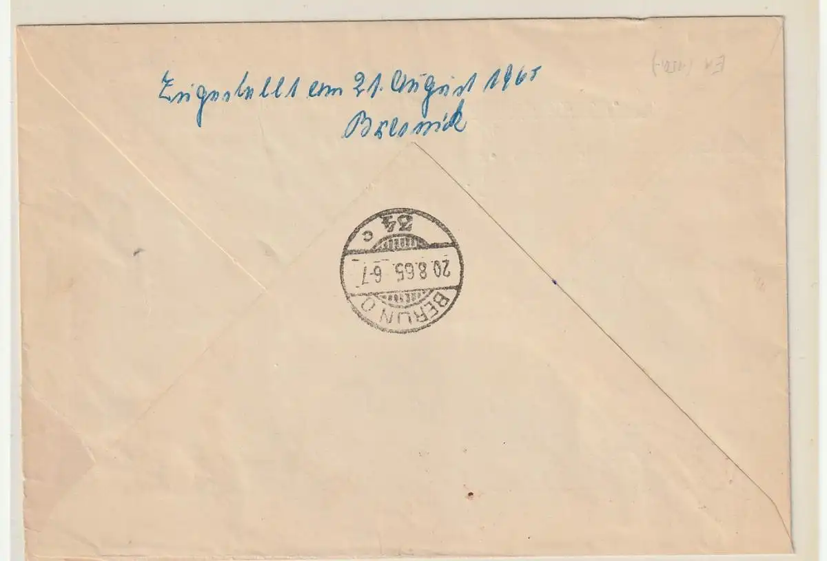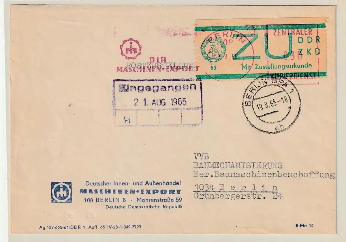 ZKD-Brief mit Zustellurkunde, frankiert mit E1