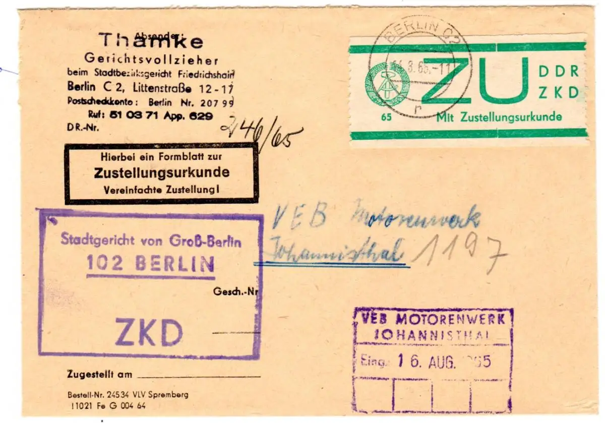 ZKD-Gerichts-Brief mit Zustellurkunde