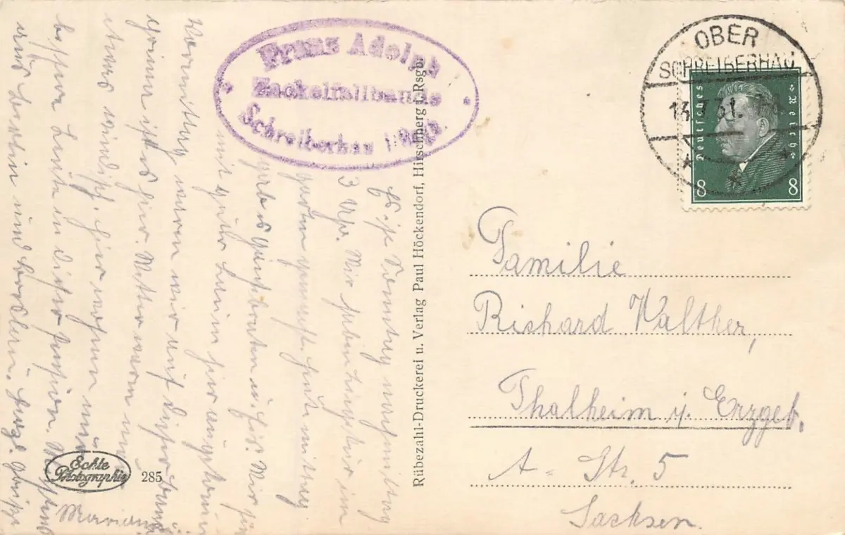 Rückseite: gelaufen 1931 von Ober-Schreiberhau