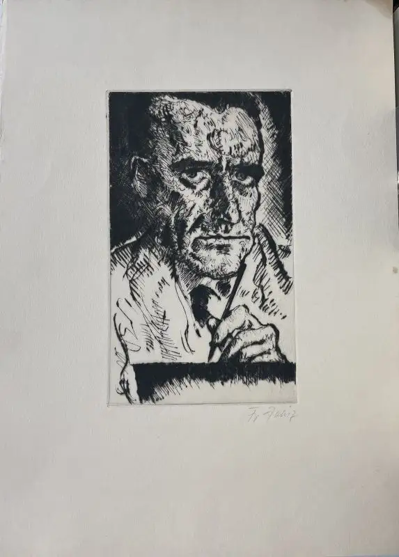 Zalisz, Fritz (1893 Gera - 1971 Leipzig),, Selbstbildnis mit Radiernadel. Radierung