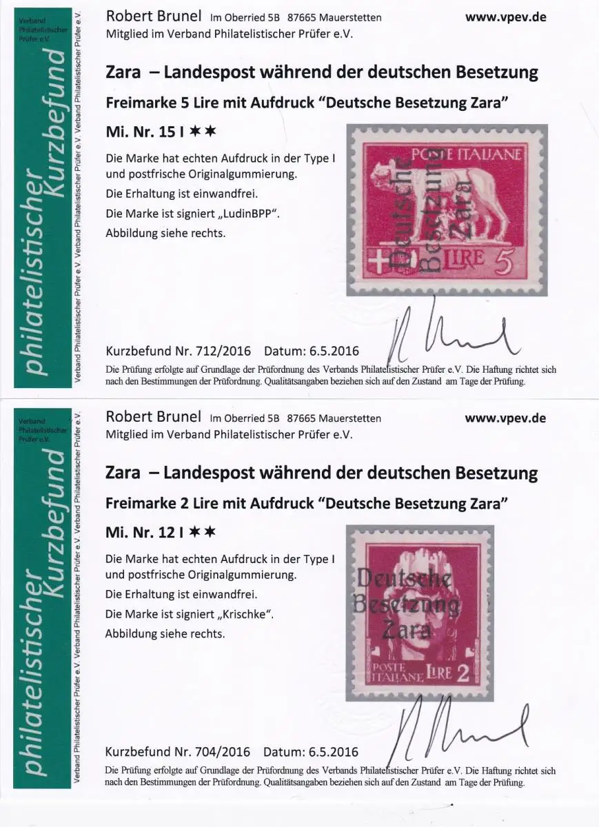 Zara: MiNr. 1, 12, 15I, postfrisch **