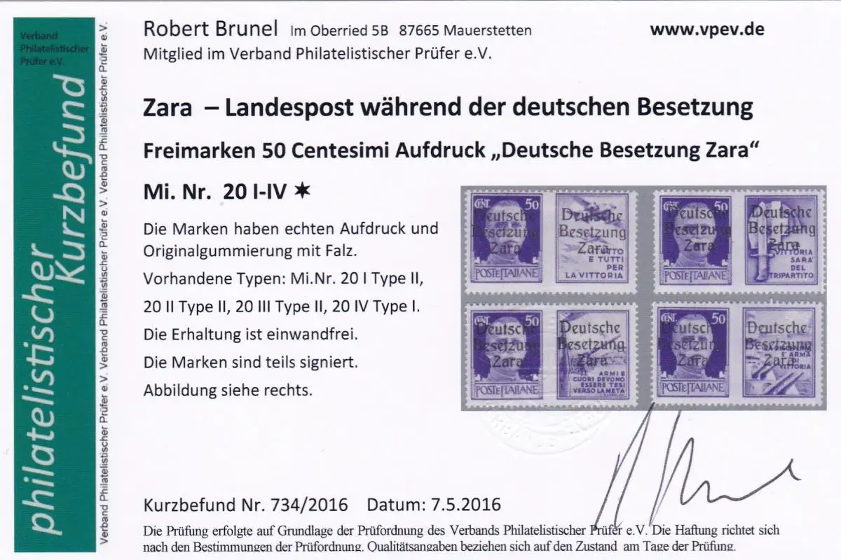Zara: MiNr. 20 I-IV, versch. Type, *