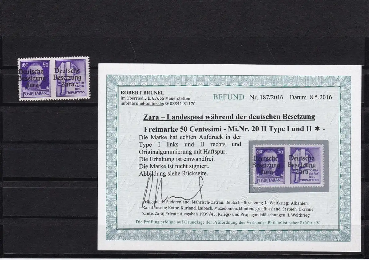 Zara: MiNr. 20 II, Type I und II, *