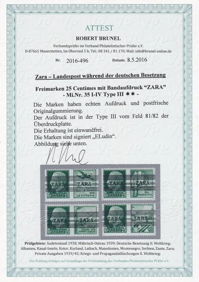 Zara: MiNr. 35 I-IV, Type III, ** postfrisch,