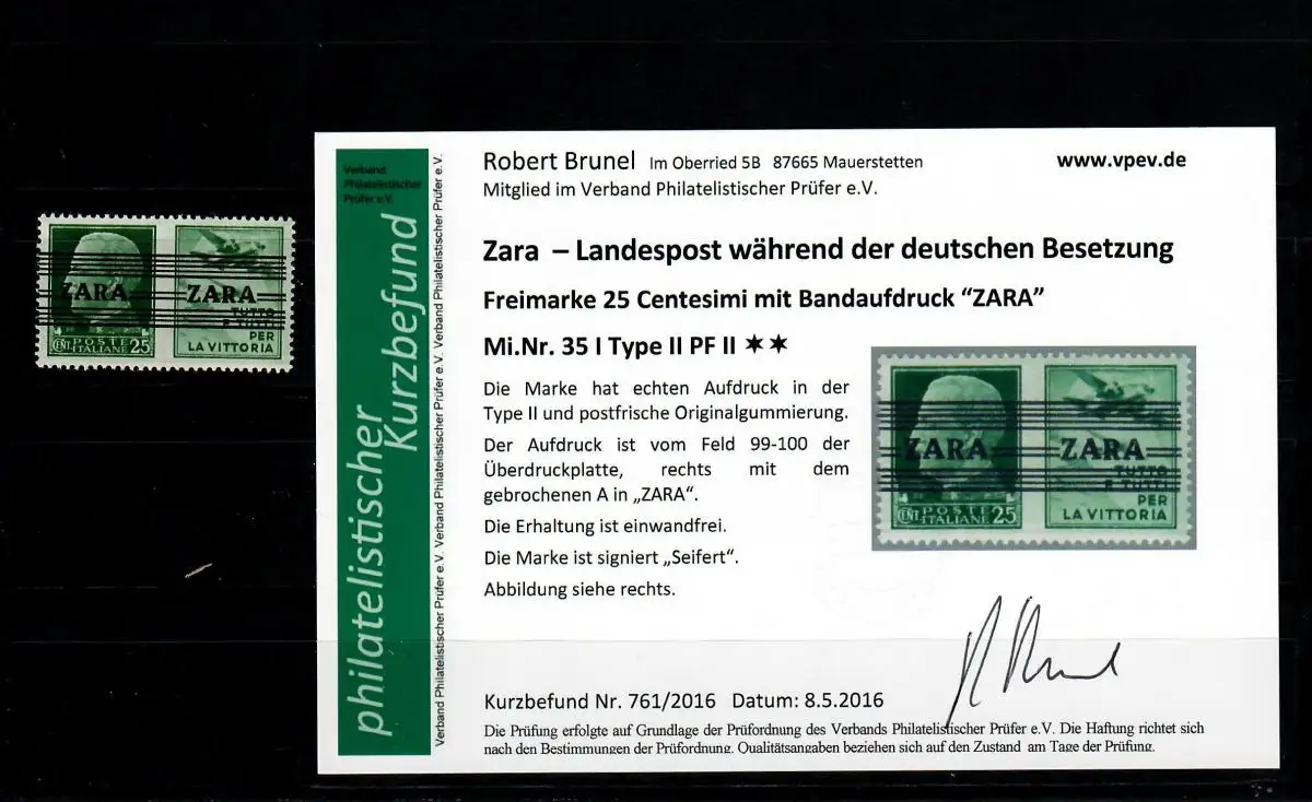 Zara: MiNr. 35 I, Type II, Plattenfehler II, **, postfrisch