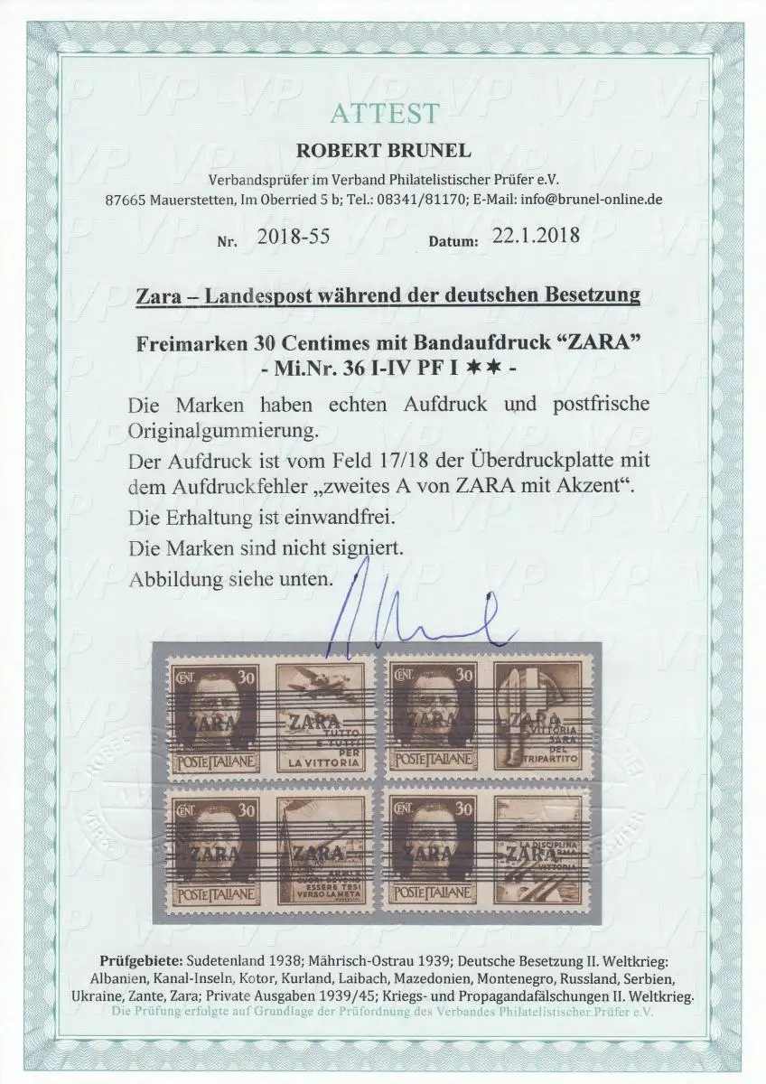 Zara: MiNr. 36 I-IV, Plattenfehler I, postfrisch