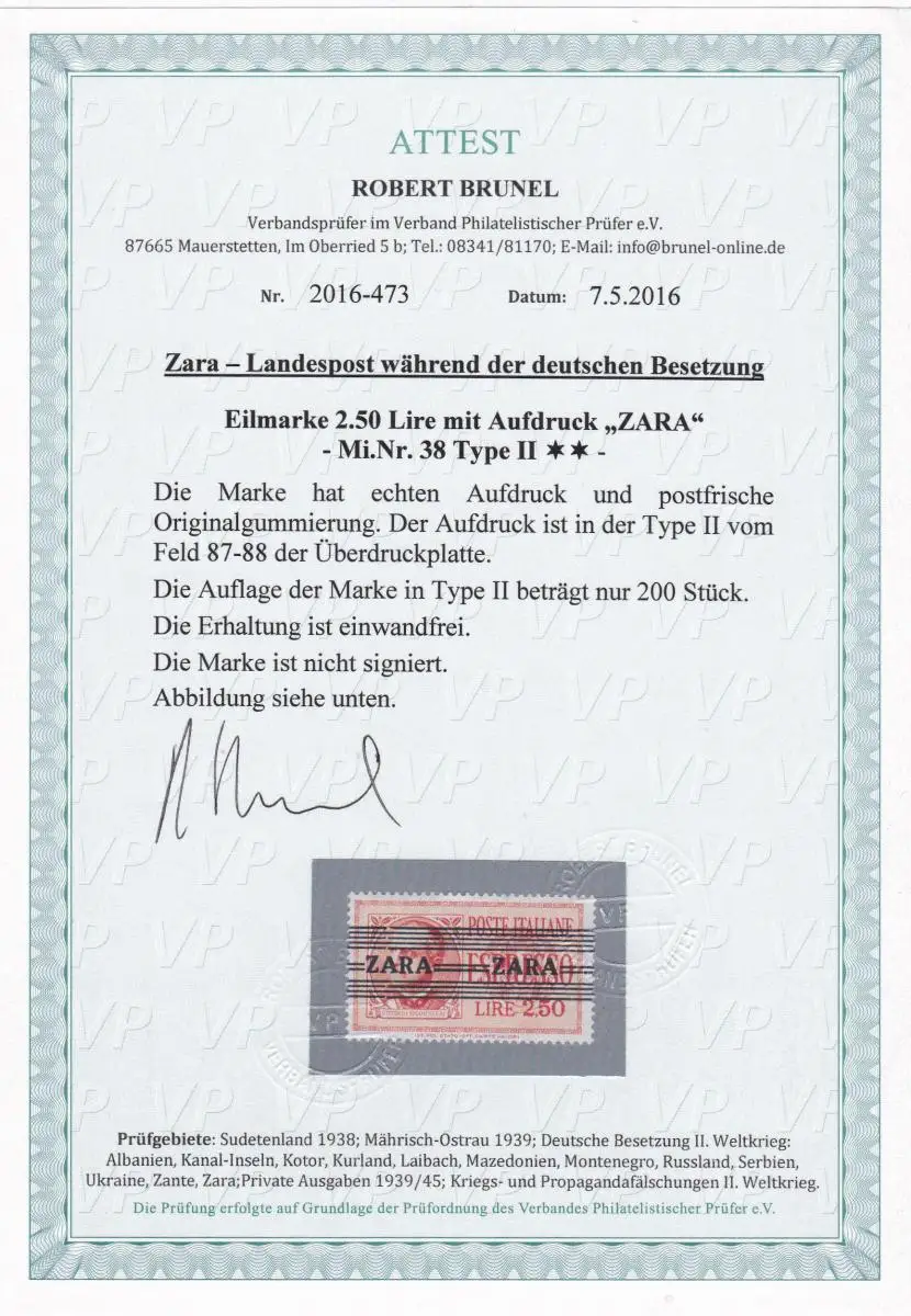 Zara: MiNr. 38 Type II, ** postfrisch,