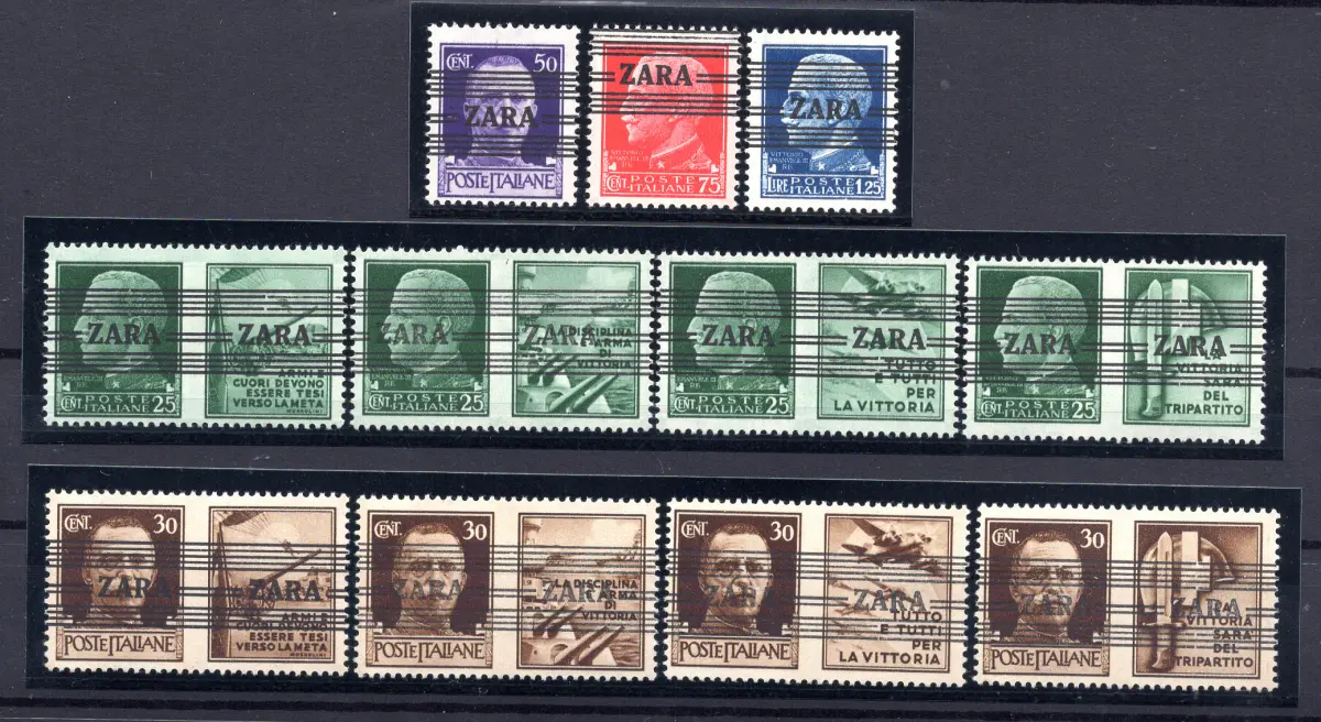 MNH - Vollgummi - - Zara Occ. Deutsch - Briefmarken aus Italien aufgedruckt Nr. 24/34 sehr gute komplette Serie sehr frisch, gut zentriert - Kat. euro 900 Cod.924/182