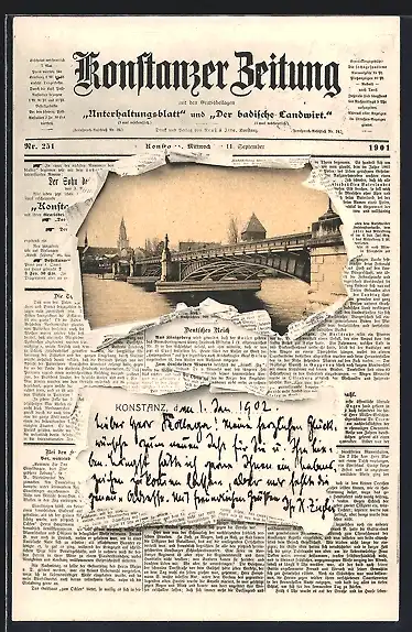 Zeitung-AK Konstanz, Partie an der Brücke, Ansicht in der Konstanzer Zeitung