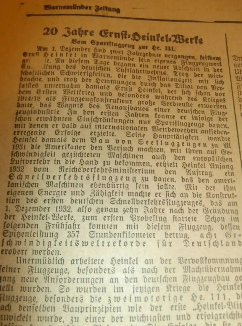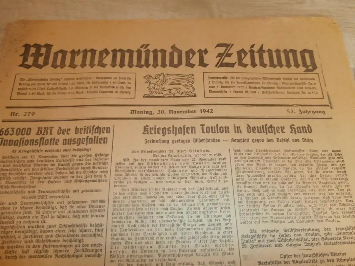 Zeitung Warnemünde , 30.11.1942, Panzer , Eutin , Reichsbräuteschule , Heinkel Werke in Rostock , Mecklenburg