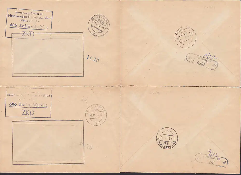 Zellau-Mehlis zwei ZKD-R5-Stempel in schwarz, rs. PSSt. (21) Bad Salzungen (s6211_4)