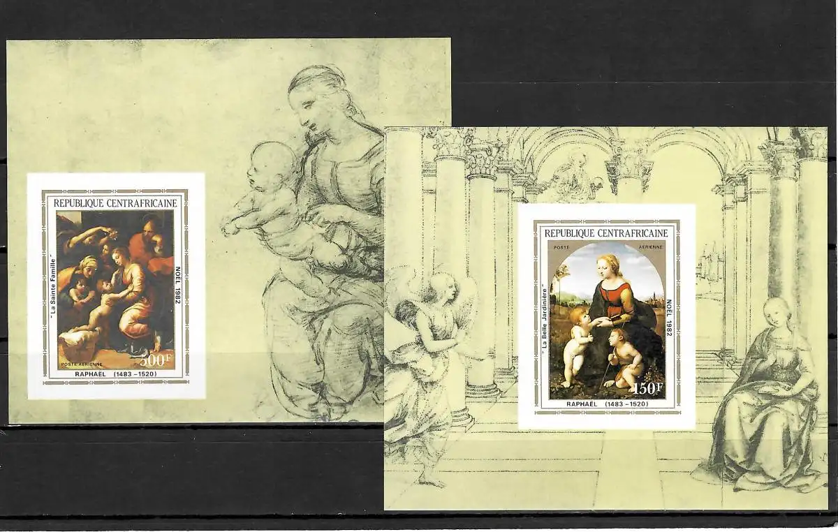 Zentralafrika 1982: La Sainte Familie, Raphael, Noel, 2x Block postfrisch
