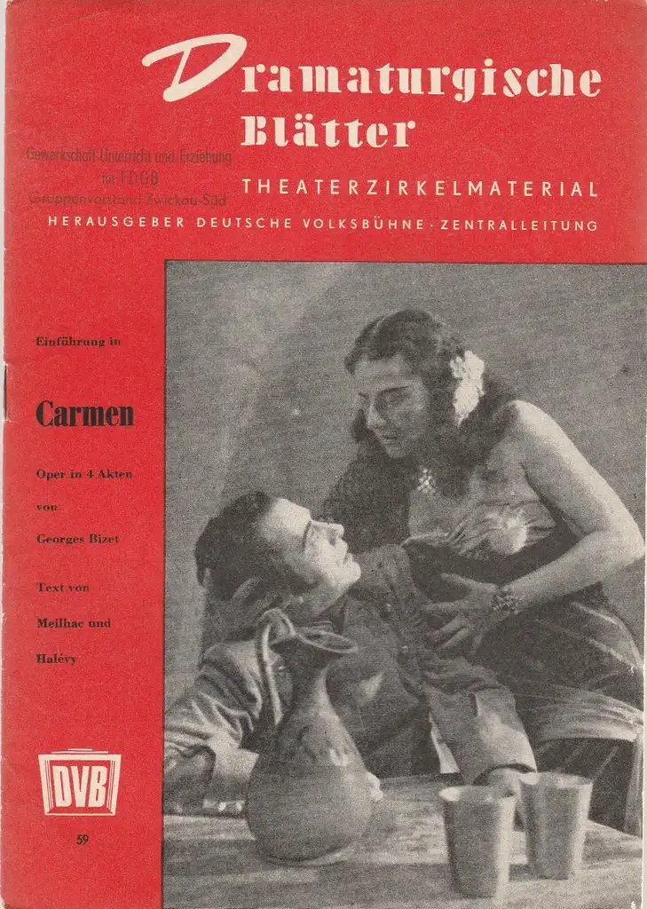 Zentralleitung der Deutschen Volksbühne, FDGB-Bundesvorstand: Dramaturgische Blätter Einführung zu CARMEN Oper von Georges Bizet Nr. 59.