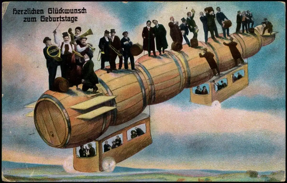 Zeppelin aus Bierfässern mit Musikkapelle Geburtstag Birthday 1912