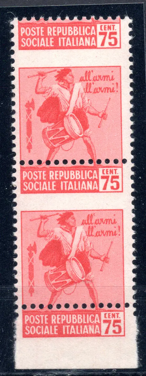 Zerstörte Denkmäler Cent. 75 Sorten hoher Wert Vollgummi - Zerstörte Denkmäler Cent. 75 n. 508cb vertikales Drehmoment b. von f. unten mit stark vertikal verschobener Verzahnung Cent. 75 oben statt unten, am Blattrand wiederholt - Kat. euro 180+ Cod. 194/13