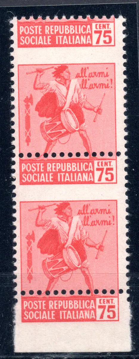 Zerstörte Denkmäler Cent. 75 Sorten hoher Wert Vollgummi - Zerstörte Denkmäler Cent. 75 n. 508cb vertikales Drehmoment b. von f. unten mit stark vertikal verschobener Verzahnung Cent. 75 oben statt unten, am Blattrand wiederholt - Kat. euro 180+ Cod. 194/13