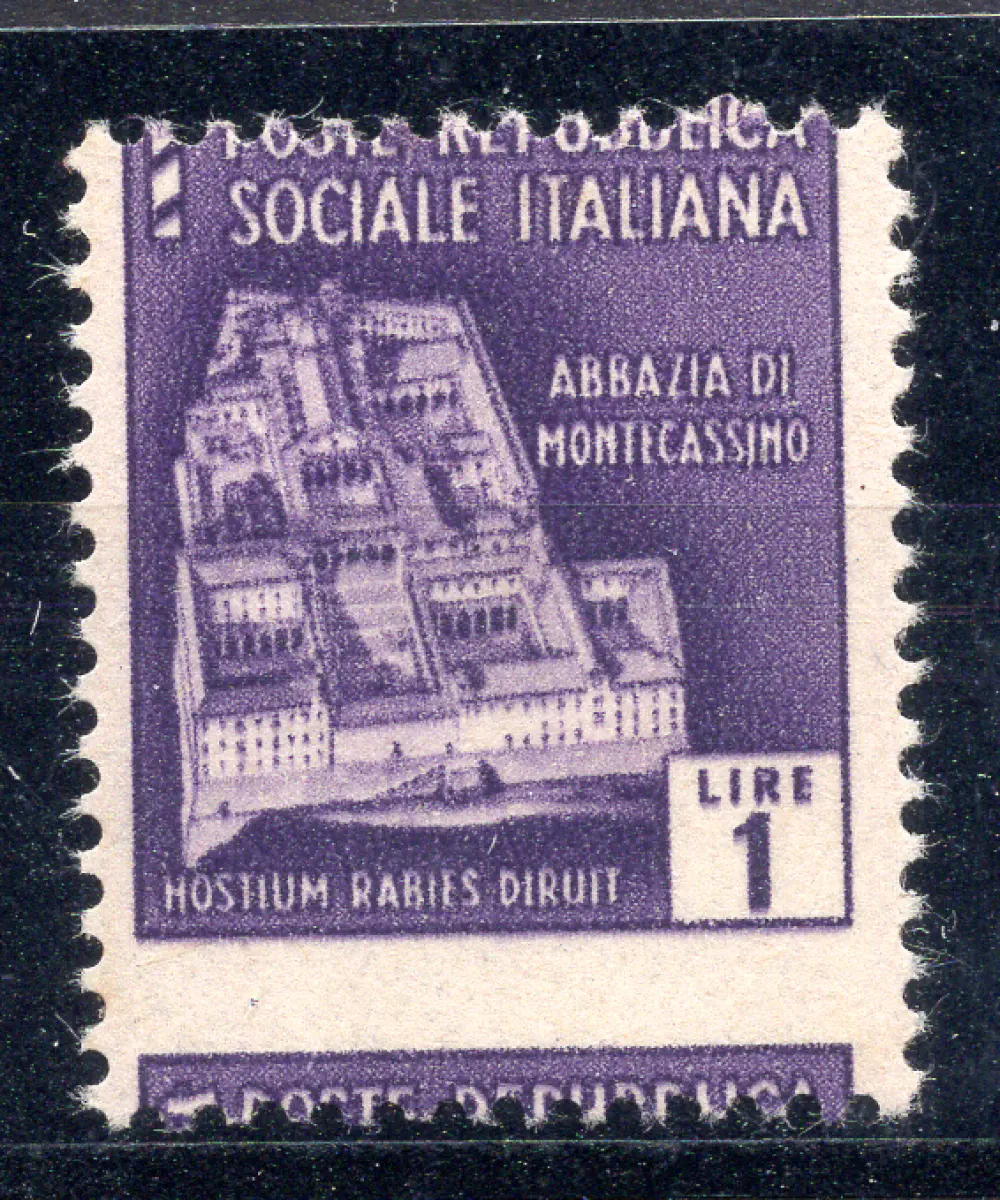 Zerstörte Denkmäler Lire 1 Sorte verschobene Verzahnung Vollgummi - Zerstörte Denkmäler Lire 1 Nr. 509da stark nach unten verschobene horizontale Verzahnung - Kat. € 90 Cod. 195/13