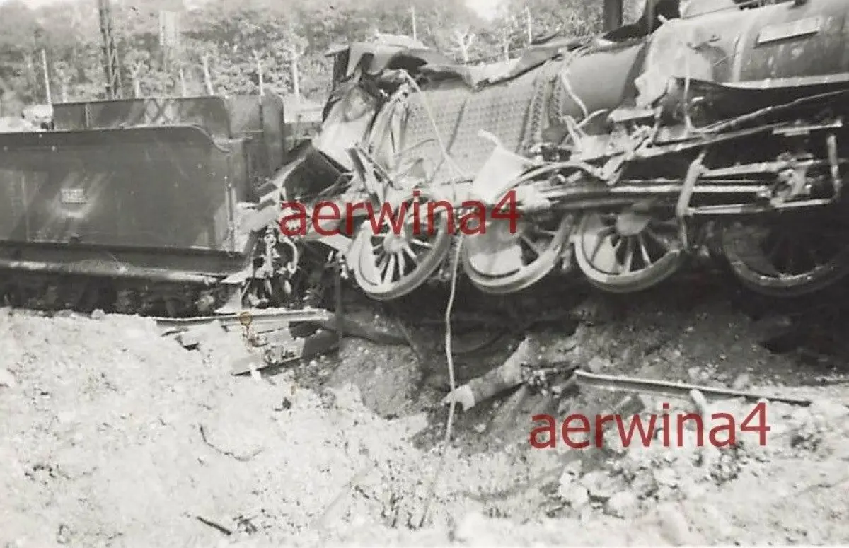 Zerstörte franz. Dampflock in Evreux Frankreich