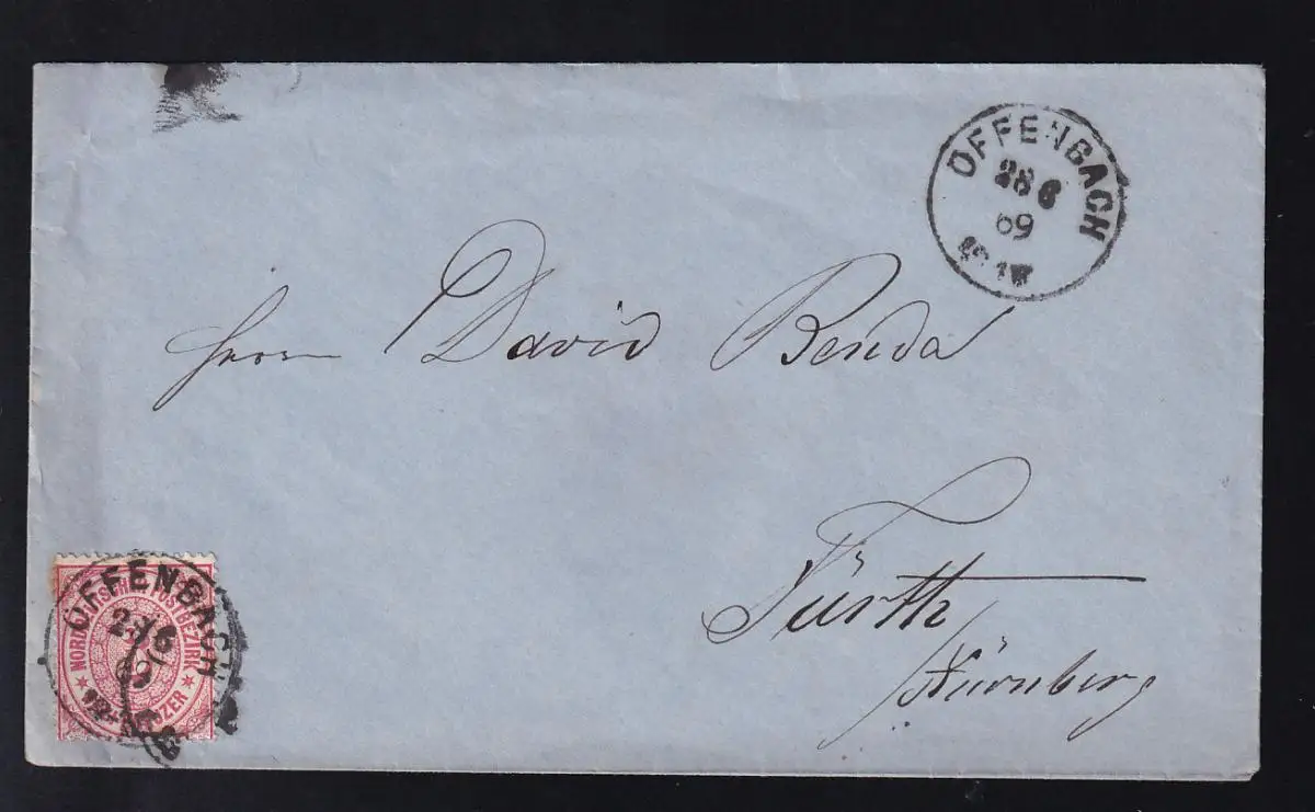 Ziffer 3 Kr. auf Brief mit K1 OFFENBACH 28.6.69 nach Fürth