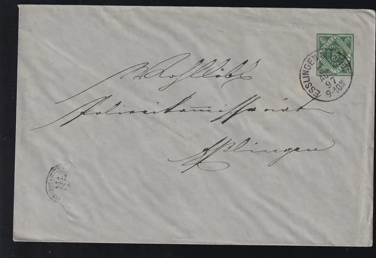 Ziffer 5 Pfg. mit K1 ESSLINGEN-BAHNHOF 2 AUG 97 Nach Esslingen